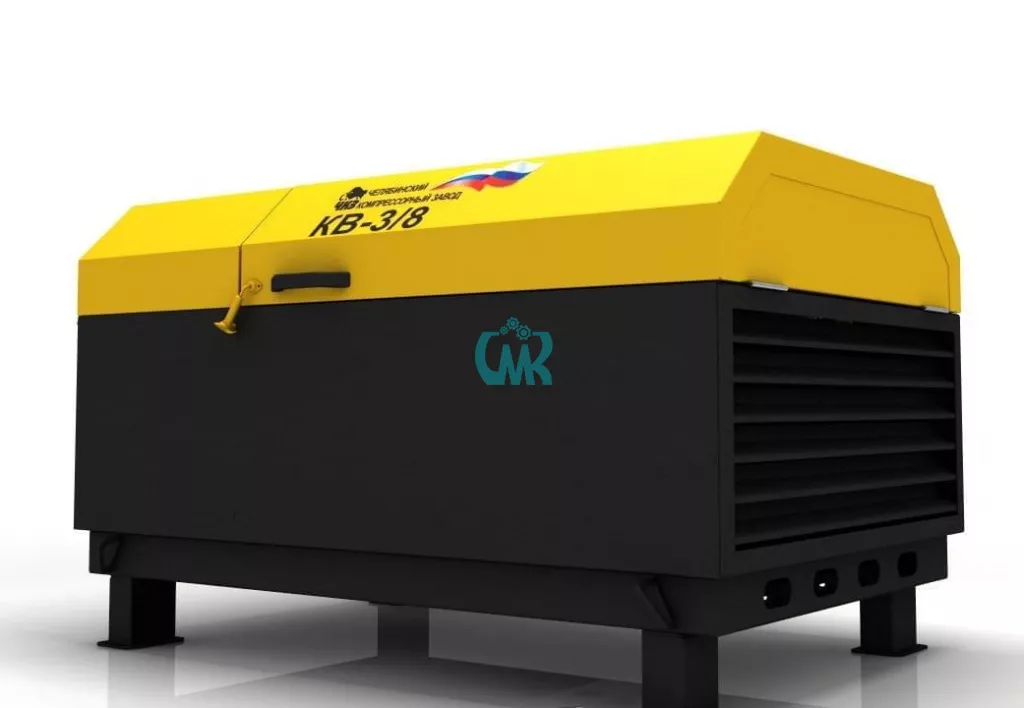 Компрессорные установки типа KB, производительностью от 2,5 до 30 м3/мин, рабочим давлением от 6 до 30 бар, предназначены для снабжения сжатым воздухом оборудования, которое используется на участках с ограниченным или отсутствующим электроснабжением, а также для работы в сложных кли- матических условиях (до минус 35оС). Модель КВ-3/8 предназначена для работы трех отбойных молотков, одного перфоратора или других пневмоинструментов. Малый вес позволяет перевозить их легковым автомобилем (исполнение на шасси) или в кузове небольшого грузовика (стационарный вариант).