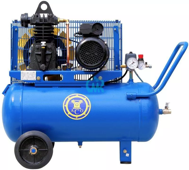 Передвижной поршневой компрессор К12 производства Бежецкого завода АСО с компрессорной головкой С412М, ременным приводом от однофазного электродвигателя напряжением 220 В мощностью 2.2 кВт. Реле давления Condor MDR. Объем ресивера 60 л. Производительность компрессора 300 л/мин, производительность по нагнетанию 160 л/мин. Максимальное рабочее давление 8 атм. Размеры 105 х 50 х 92 см, вес 105 кг.