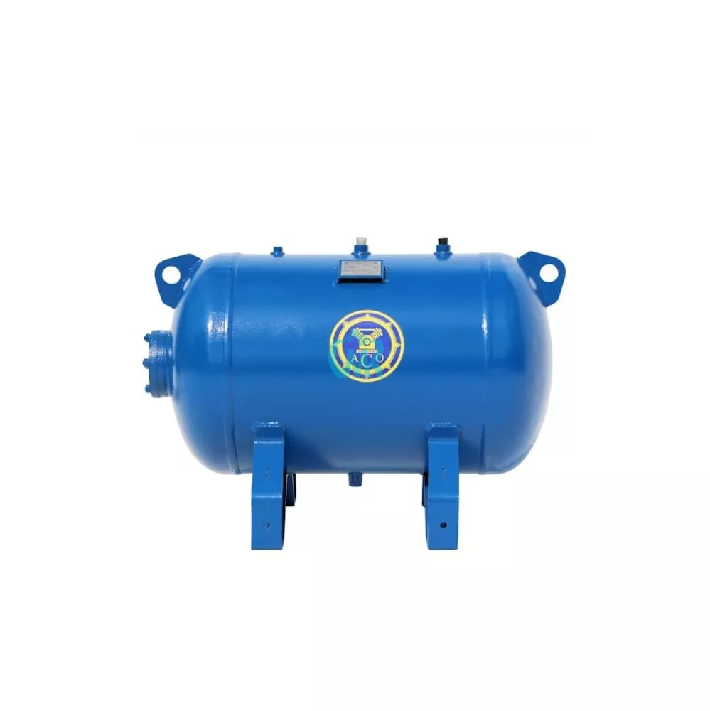 Ресивер воздушный горизонтальный РГ 110/10 Бежецкого завода АСО объемом 110 л рассчитан на эксплуатацию при максимальном рабочем давлении 10 атм при температуре от - 20 до + 100 °C, изготовлен из стали Ст3пс с толщиной стенки обечайки 4 мм и толщиной днища 5 мм. Габариты 82 х 56 х 67 см, масса 55 кг.
