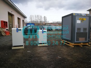 В данном случае такой компрессор был поставлен лесопромышленному предприятию. Согласно технического задания Заказчика, компрессор был поставлен с оборудованием по воздухоподготовке, двумя осушителями рефрижеаторного типа IDFA55E-23 и IDFA75E-23, с целью  удаления на выходе механической пыли, микроскопических частиц масла и конденсата.